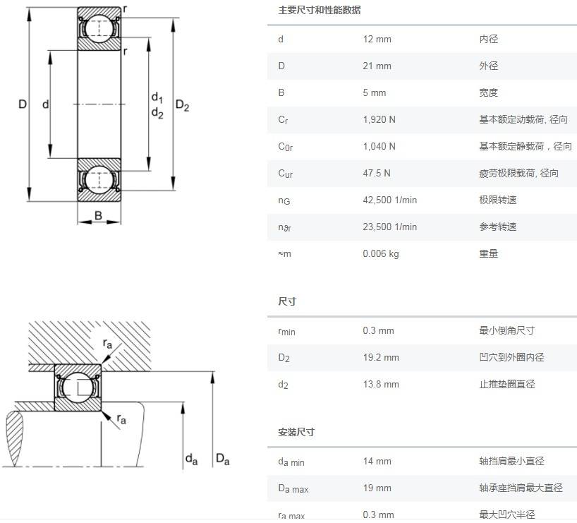 SIAIF不銹鋼深溝球軸承 S61801-2Z 詳細(xì)參數(shù)