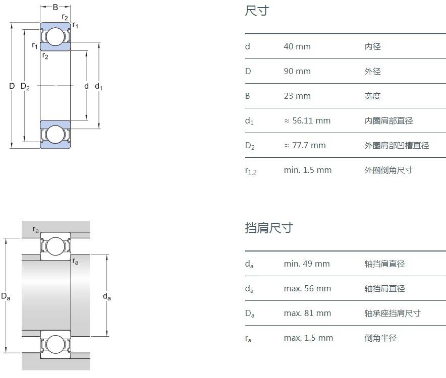 SIAIF不銹鋼深溝球軸承 S6308-2Z 詳細(xì)參數(shù)