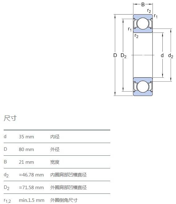 SIAIF不銹鋼深溝球軸承 S6307-2Z 詳細(xì)參數(shù)