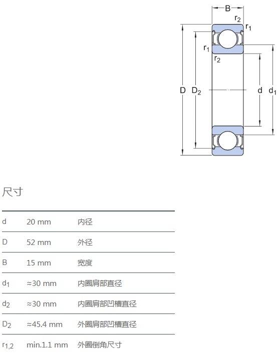 SIAIF不銹鋼深溝球軸承 S6304-2Z 詳細(xì)參數(shù)