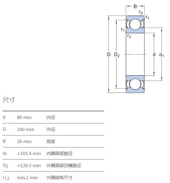 SIAIF不銹鋼深溝球軸承 S6216-2Z 詳細參數(shù)