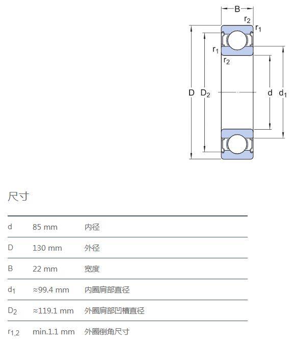 SIAIF不銹鋼深溝球軸承 S6017-2Z 詳細(xì)參數(shù)