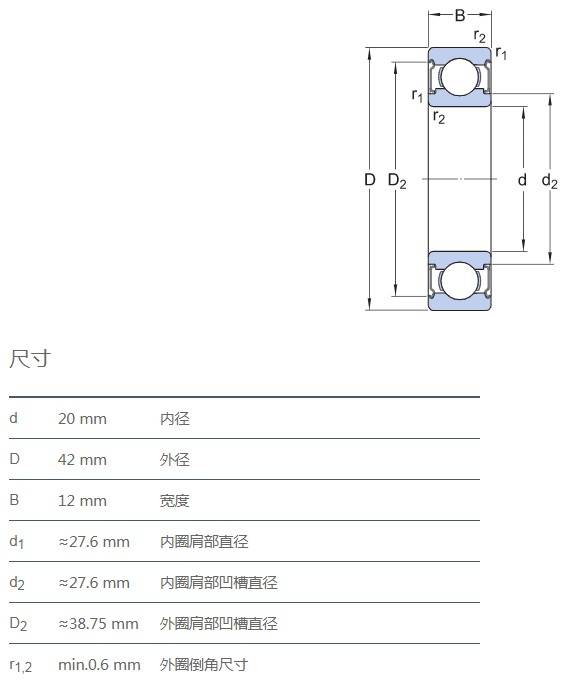 SIAIF不銹鋼深溝球軸承 S6004-2Z 詳細(xì)參數(shù)