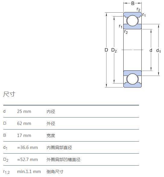SIAIF耐高溫石墨自潤滑軸承 6305-2Z/VA201 詳細(xì)參數(shù)