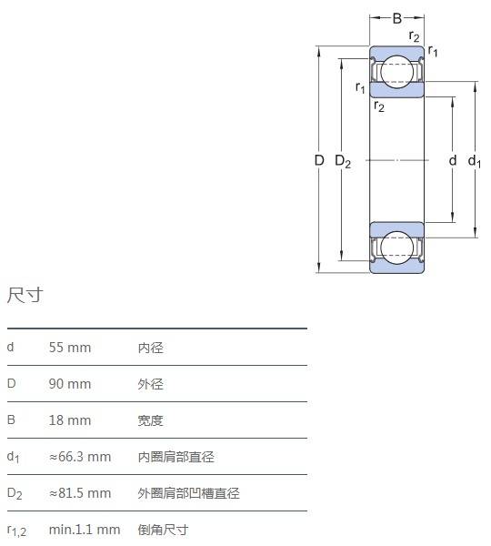 SIAIF耐高溫石墨自潤滑軸承 6011-2Z/VA208 詳細(xì)參數(shù)