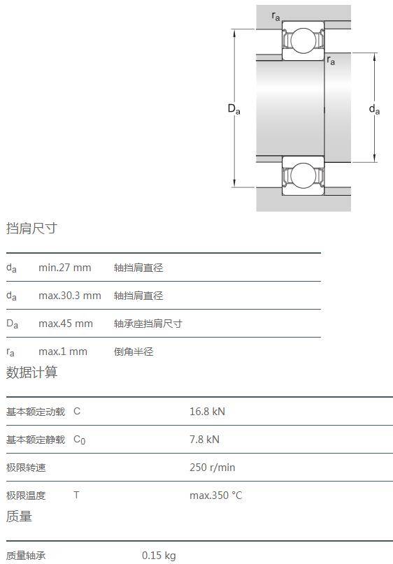 VA201用于高溫應(yīng)用的軸承,配有沖壓鋼保持架、經(jīng)軸承的套圈和滾動(dòng)體經(jīng)過錳磷化處理,徑向游隙為多倍 C5 游隙,且使用聚亞烷基二醇(PAG)/石墨的混合物進(jìn)行潤滑