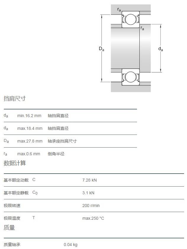 SIAIF耐高溫軸承 6201ZZ/VA201 詳細參數