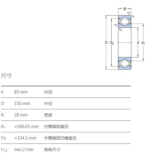 SIAIF耐高溫軸承 6217ZZ/VA208 詳細參數(shù)