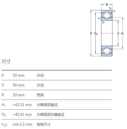 SIAIF耐高溫軸承 6210ZZ/VA208 詳細(xì)參數(shù)