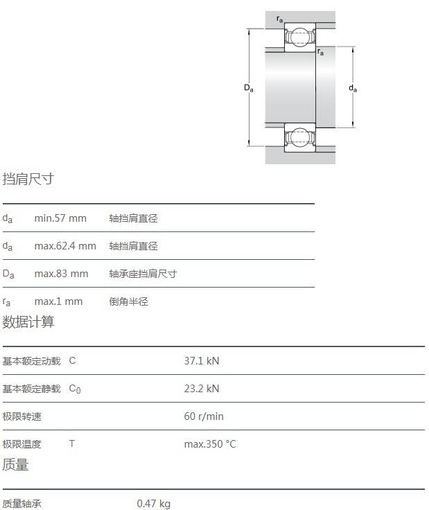 VA201用于高溫應(yīng)用的軸承,配有沖壓鋼保持架、經(jīng)軸承的套圈和滾動(dòng)體經(jīng)過錳磷化處理,徑向游隙為多倍 C5 游隙,且使用聚亞烷基二醇(PAG)/石墨的混合物進(jìn)行潤滑